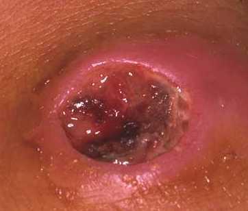 инфекциозно заболяване, което у човека се проявява с хеморагично-некротични кожни лезии, предимно по ръцете; рядко процесът може да се локализира в червата, белия дроб или да се развие сепсис; източник на заразата са домашни и диви животни