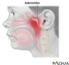 хипертрофия на третата сливица (фарингеална или носна сливица), която запълва назофаринкса, затруднява носното дишане и създава турбуленции при преминаване на въздушния поток; това създава предпоставка за чести инфекции;