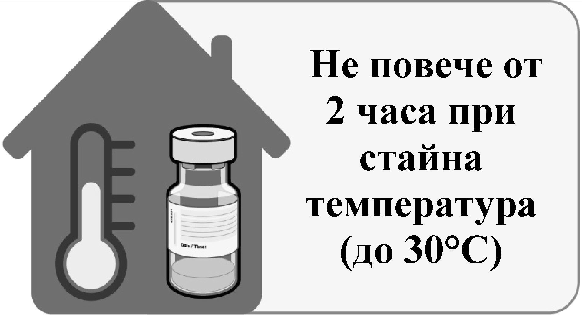 - общо 4 часа, когато се съхранява при температура от 8°C до 30°C; това включа 2-та часа при температура до 30°C, описани по-горе.