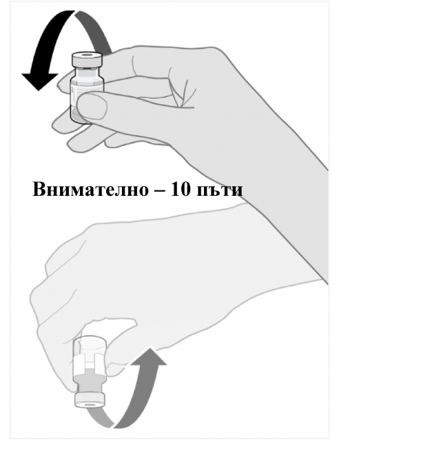 - Оставете размразения флакон да достигне стайна температура и внимателно го обърнете 10 пъти преди разреждане. Не разклащайте.