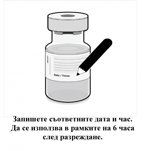 - След разреждане съхранявайте при 2°C до 30°C и използвайте в рамките на 6 часа, включително времето за транспортиране.