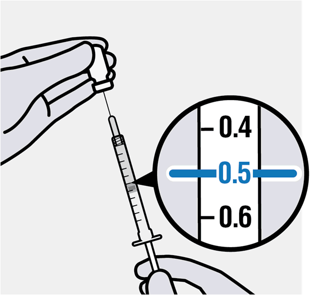 - Използвайте стерилна игла и стерилна спринцовка, за да изтеглите единична доза от 0.5 ml от многодозовия флакон.