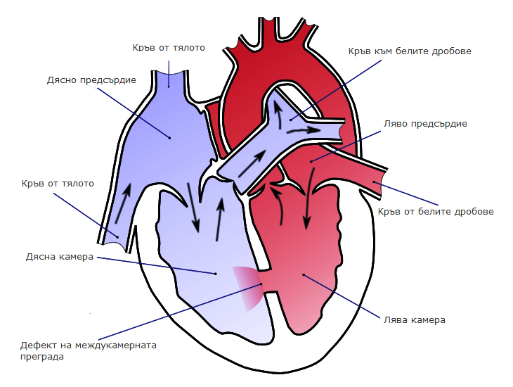 Синоними: Междукамерен дефект (МКД), междукамерен септален дефект (МСД)