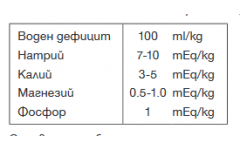 Таблица 1 Течностен и електролитен дефицит при ДКА
