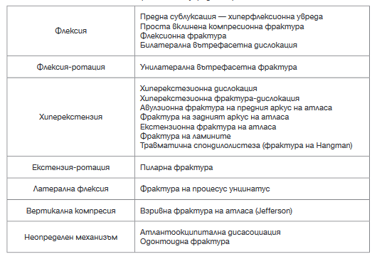 Таблица 1: Механизми на ГМТ и свързани с тях увреди на гръбначния стълб