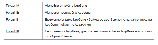 Таблица 4 Класификация на ХГХТ според ендоскопски изглед по Forest
