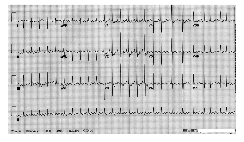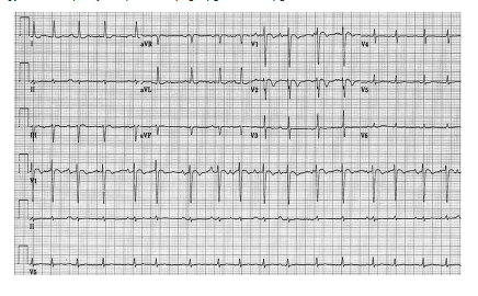 Фигура.1 ЕКГ при мултифокална предсърдна тахикардия.