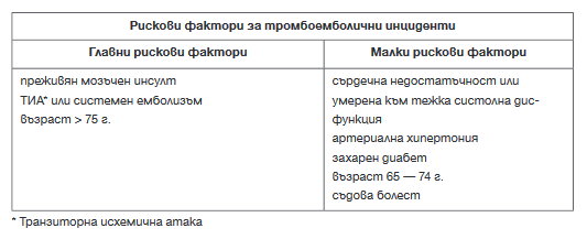 Таблица 1. Профилактика на тромбоемболичните инциденти и оценка на риска.