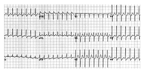 Фигура 6. ЕКГ при WPW синдром и предсърдно мъждене