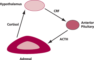 Прекомерна автономна продукция на кортизол в резултат на адренален тумор в областта на крайния орган (синдром на Cushing), двустранна хиперплазия на надбъбреците вследствие прекомерна синтеза на АКТХ при аденом на предния дял на хипофизата (M. Cushing) или увеличена синтеза на кортизол при увреждане на хипоталамуса