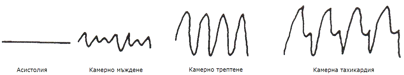 - Спиране на дишането: липсват видими дихателни движения (след 30-60 сек.), както и дихателни шумове. He ce усеща дишане.
